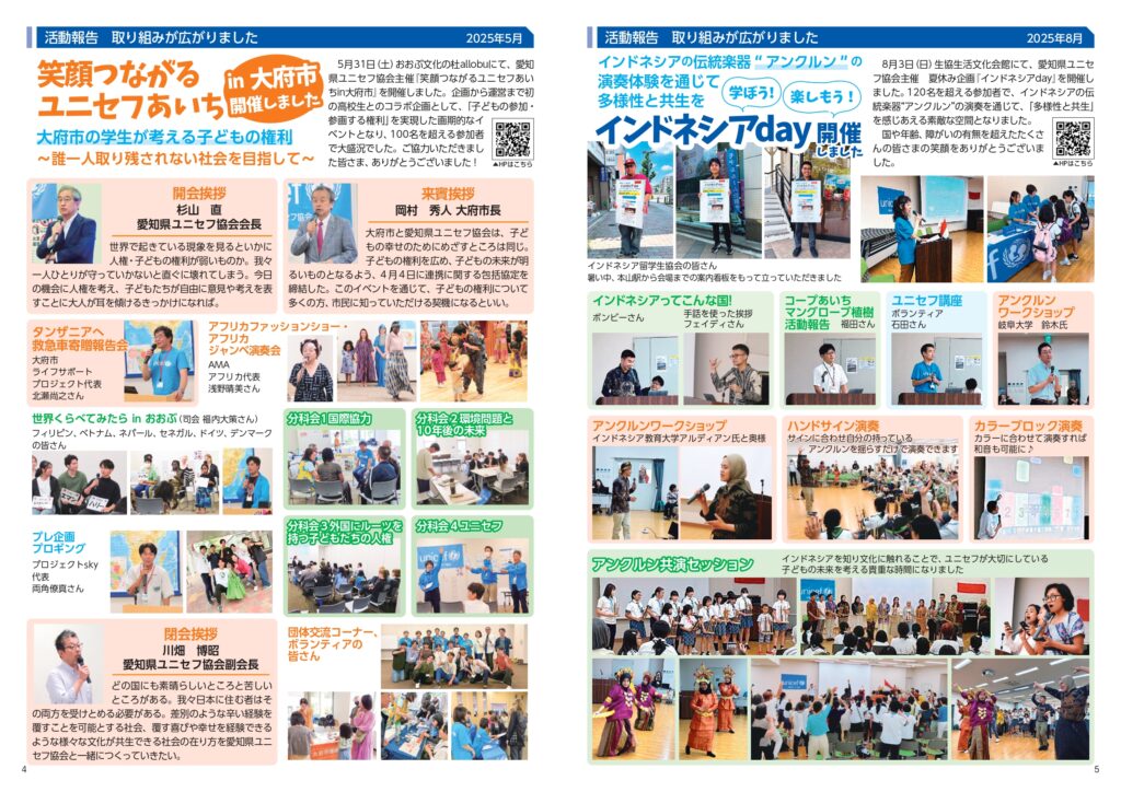 ニュースレター(2025年8月)を発行しました。1月~8月までの学習会やイベント参加の活動紹介や中規模イベント「笑顔つながるユニセフあいちin大府市」 小規模イベント「インドネシアday」の当日の様子も紹介しております。また、今後の予定なども掲載しておりますので、是非ご覧ください。