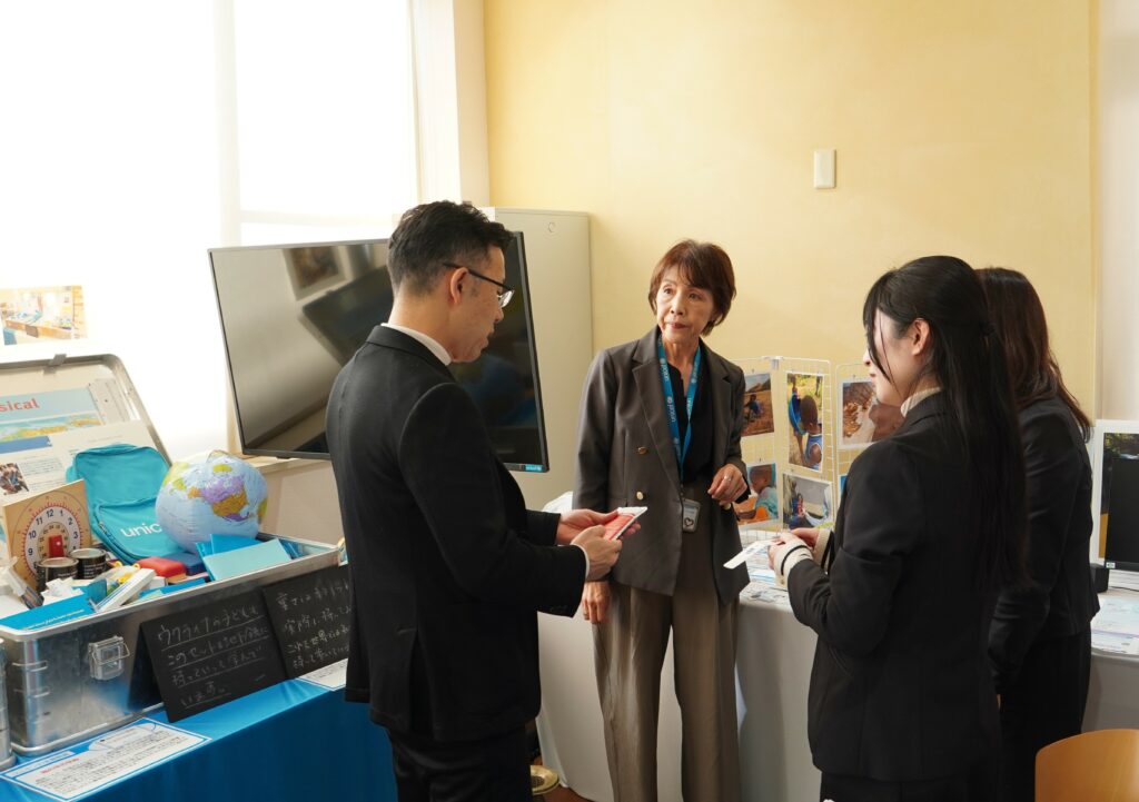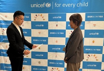2025年11月11日(火)愛知県ユニセフ協会展示ルームにて、昨年に引き続き、株式会社 みらいホールディングス様よりご寄付の贈呈式を行いました。みらいホールディングス様では昨年実施された『全社ウォーキングイベント』でアンケートをとられ、その結果を踏まえ更に参加しやすく工夫をされ、参加者が増えたとのご報告がありました。アンケートでは「歩くだけで募金ができると思うと普段なら歩かない距離でも歩こうと思えた」などのご意見もあり、楽しくコミュニケーションをとり社会貢献も行いながら運動不足解消につなげるとの目的をユニセフへの温かいお気持ちと共に着実に実践されておられ感服いたしました。贈呈式後は昨年より更に詳しく支援物資についての説明をお聞きいただき、来年に向けた具体的なアイディアを熱く語られました。みらいホールディングス様の皆さまに敬意を表しますとともに、たくさんの善意に心より御礼申し上げます。ありがとうございました。