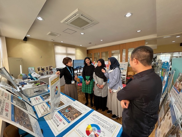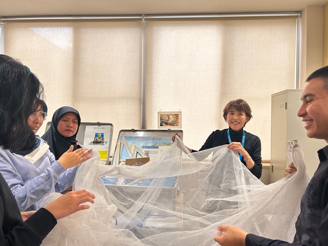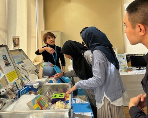 2025年11月28日(金)名古屋大学に留学されているインドネシアからの留学生の皆さん5名が、本山展示ルームにユニセフ学習会のため来訪されました。ユニセフ活動や世界の子どもたちの写真パネルの説明を熱心に聞いてくださり、支援物資などについて興味深く手に取って見ながらインドネシアの子どもを取り巻く現状や母子手帳などの取組について活発な意見交換ができました。「箱の中の学校」についても、学習ができるだけでなく、皆と一緒にいられる安心感も得られる素晴らしい支援物資であるなど、高い問題意識をもった様々な視点での話で盛り上がり時間が足りないほどでした。インドネシアについての最新情報も伺い、貴重な学びの場となりました。有意義な機会をいただけましたことに心より感謝いたします。ありがとうございました。