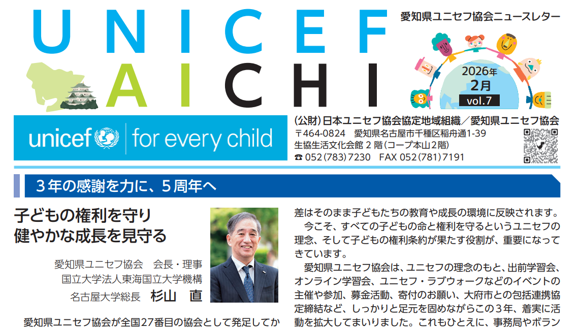 2026年2月9日(月)本山生協生活文化会館にて、愛知県ユニセフ協会第7回役員会・評議員会を開催しました。役員会では2025年度の活動及び決算報告、2026年度の事業・活動計画及び予算案について審議いただき、全議案議決いただきました。評議員会でも同様の議案が報告され確認いただきました。議案の中では、特に2027年に迎える愛知県ユニセフ協会設立5周年事業に向けて、皆さまからご協力いただきながら愛知県らしい企画を作り上げていくことで確認しました。これからも、引き続き世界の子どもたちの命と健やかな成長、子どもの権利を守るために活動してまいります。皆さまのご支援・ご協力をよろしくお願いいたします。