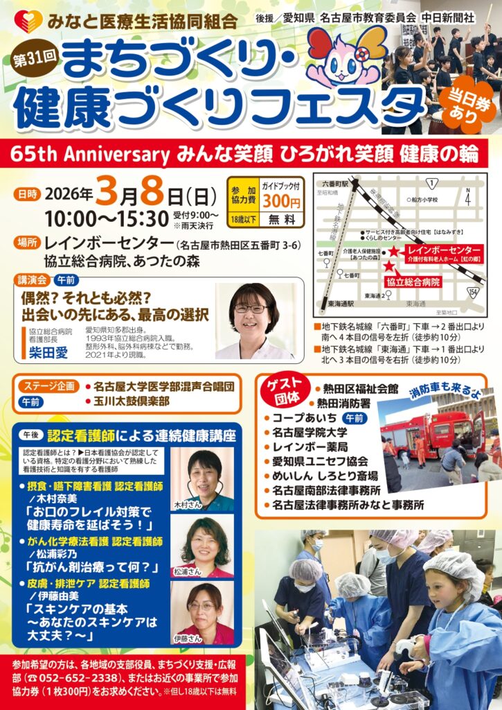 2026年3月8日(日)第31回まちづくり・健康づくりフェスタ(みなと医療生活協同組合主催)がレインボーセンター(協立総合病院筋向い)にて開催され、13:30~15:00の間ブース出展します。ネパールの水がめを持つ体験をしながら子どもの権利条約について楽しく学びます。子どもから大人までどなたでも参加できます。お気軽にお立ち寄りください。