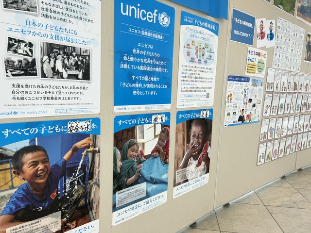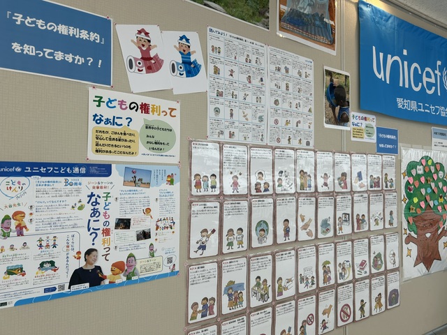 2026年4月28日(火)~5月11日(月)の大府市春のこどもまんなか月間中、大府市役所1階の健康ロビーにてユニセフパネル展を開催しています。今年は「子どもの権利」について特集を組み、国連で定められている『子どもの権利条約』について分かりやすく説明したポスターや、条約40条には何があるのかが一目で見られるカードなどを展示しています。パンフレットなどの資料も揃え、ご関心のある方はご自由にお取りいただけるようになっています。ロビー受付にてユニセフ募金箱も設置しています。是非お気軽にお立ち寄りください。